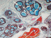 Carcinoma adenoide quístico. Componente tubular. Tricrómico de Masson.